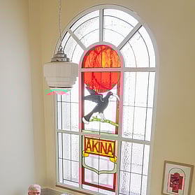 The stained glass window presents a vivid and intricate depiction of the Hastings Boys’ High School crest. Through skillful use of colour, light, and form, the elements of the crest are transformed into a dynamic tapestry that captures both the heritage and the spirit of the school. As natural light filters through the glass, the design comes alive, creating a sense of depth and inspiring reflection for all who pass by.